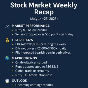Last week, Indian equity markets saw heightened volatility and witnessed their fifth consecutive weekly decline. Key drivers included sustained FII selling, volatile crude oil and currency movements, divergent corporate earnings, and rising macro uncertainties. Still, domestic institutions continued to provide crucial buffer support. As we move into the week of July 28–August 1, attention shifts to upcoming earnings results, global cues, currency & crude trends, and persistent FII/DII flows.